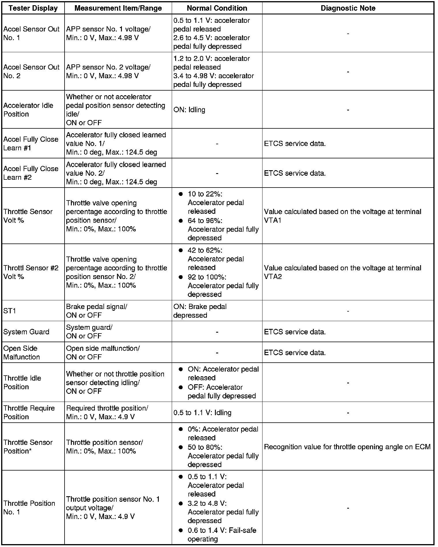 * *: Excluding throttle valve opening percentage due to Idle Speed Control (ISC).