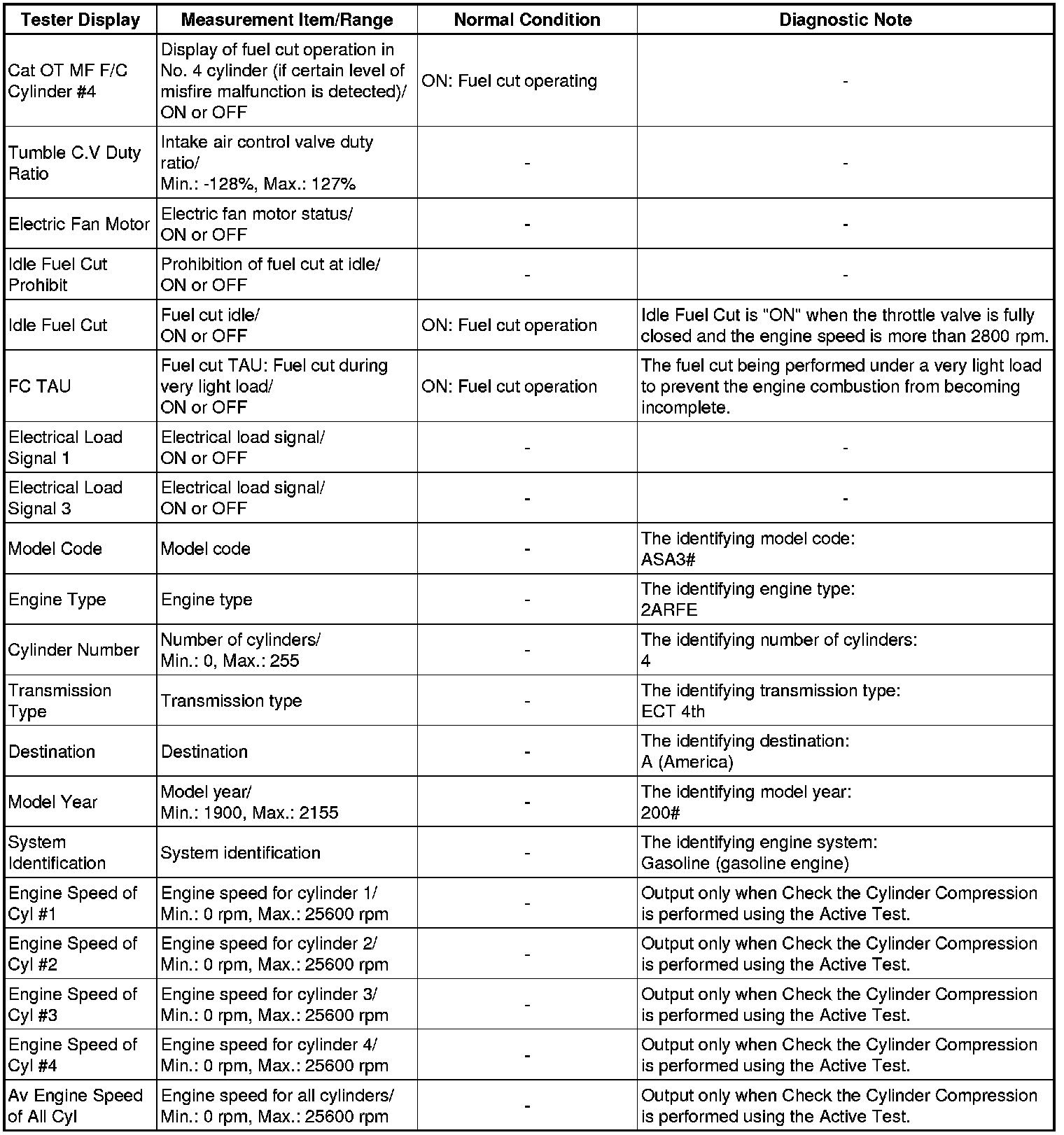 2AR-FE ENGINE CONTROL SYSTEM: SFI SYSTEM: DATA LIST / ACTIVE TEST