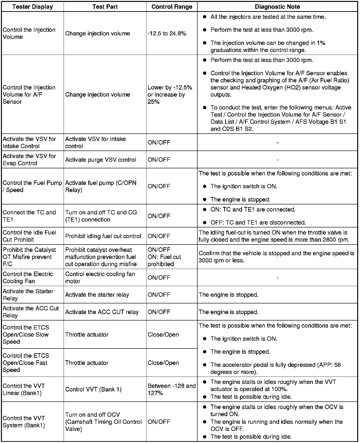 Using the Techstream to perform Active Tests allows relays, VSVs, actuators and other items to be operated without removing any parts. This non-intrusive functional inspection can be very useful because intermittent operation may be discovered before parts or wiring is disturbed. Performing Active Tests early in troubleshooting is one way to save diagnostic time. Data List information can be displayed while performing Active Tests.