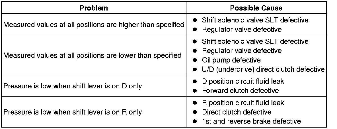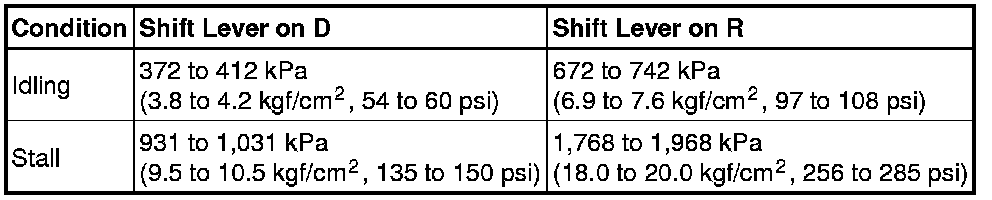 * Perform the test with the ATF at the normal operating ATF temperature: 50 to 80°C (122 to 176°F).