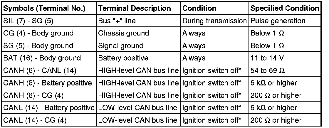*: Before measuring the resistance, leave the vehicle as is for at least 1 minute and do not operate the ignition switch, other switches or doors.