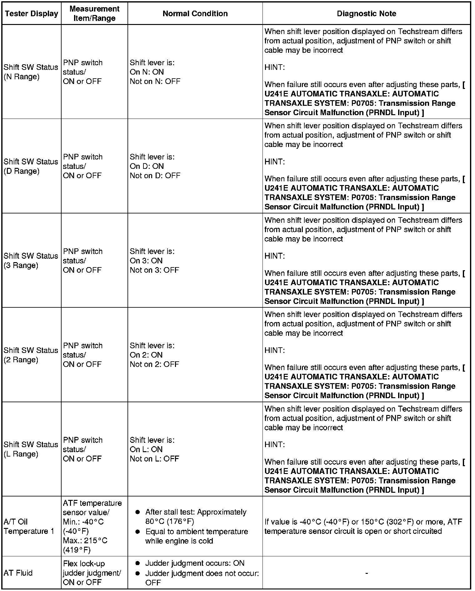U241E AUTOMATIC TRANSAXLE: AUTOMATIC TRANSAXLE SYSTEM: DATA LIST / ACTIVE TEST