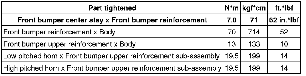 SERVICE SPECIFICATIONS: EXTERIOR: TORQUE SPECIFICATIONS