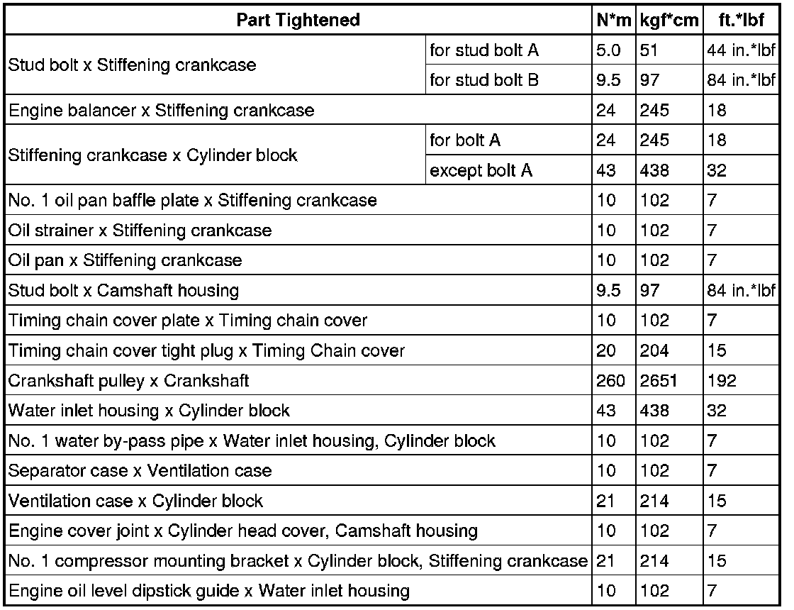 SERVICE SPECIFICATIONS: 2AR-FE ENGINE MECHANICAL: TORQUE SPECIFICATIONS