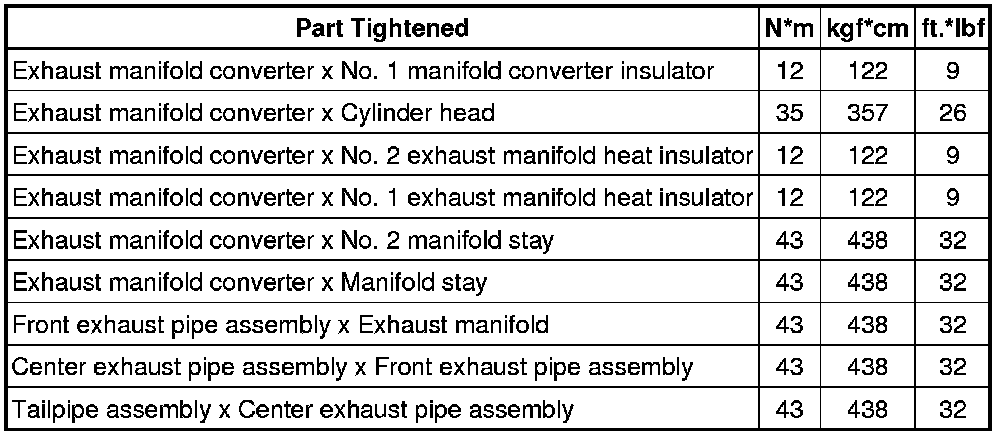 SERVICE SPECIFICATIONS: 2AR-FE EXHAUST: TORQUE SPECIFICATIONS