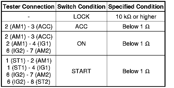 2AR-FE STARTING: IGNITION SWITCH: INSPECTION