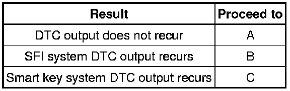 (c) Check whether output of the same DTC(s), relevant to the SFI or smart key systems, recurs by reproducing the symptoms indicated by the DTC(s) written down in the first step above.