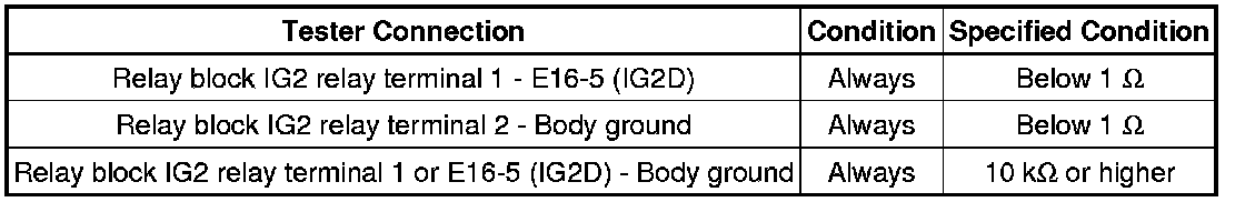 8. CHECK HARNESS AND CONNECTOR (IG2 RELAY - MAIN BODY ECU)