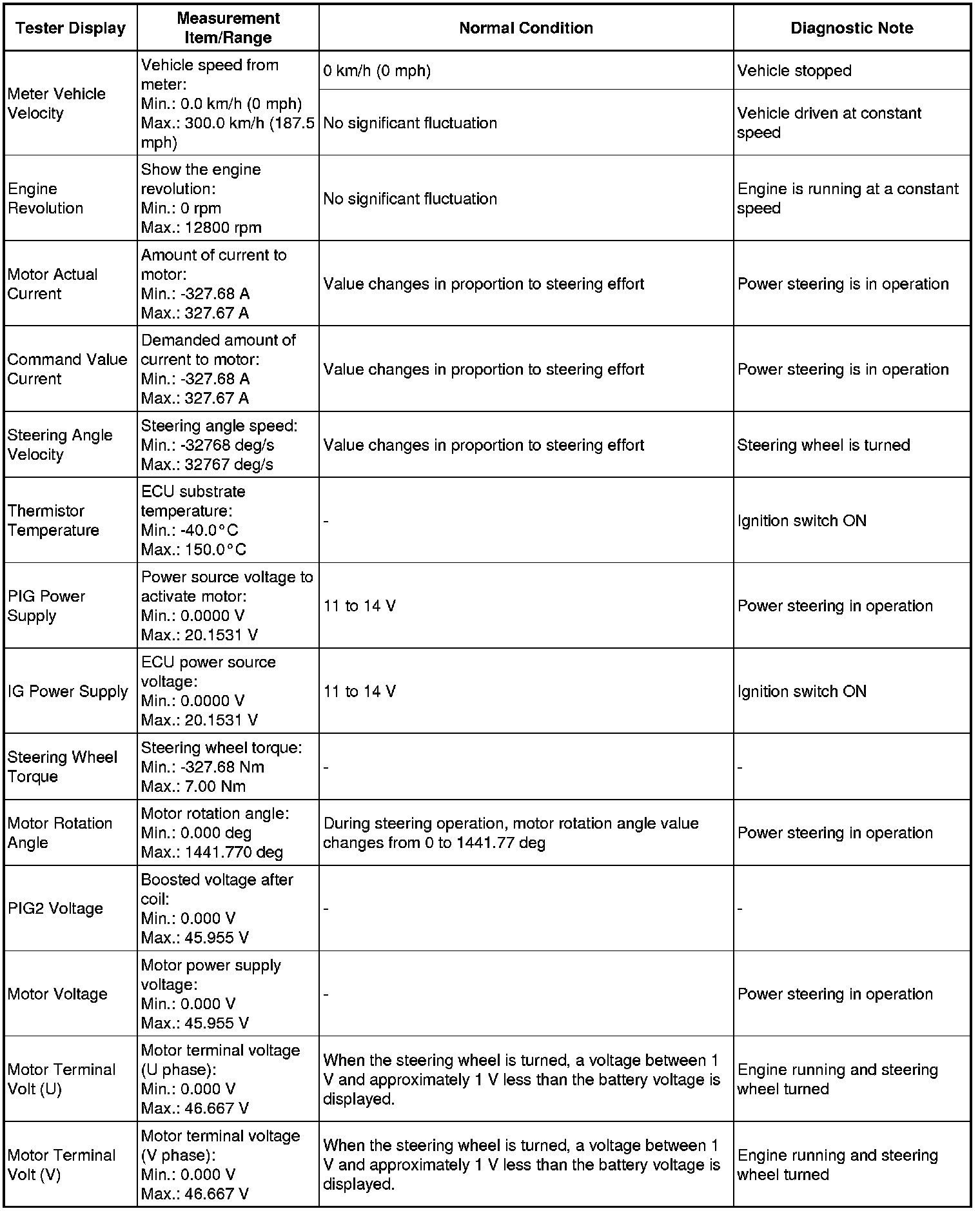 POWER STEERING: POWER STEERING SYSTEM: FREEZE FRAME DATA