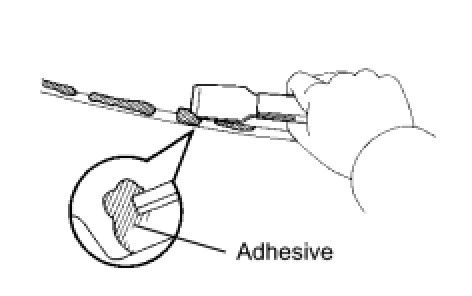 (1) Hold the quarter window glass in place securely with protective tape or equivalent until the adhesive hardens.