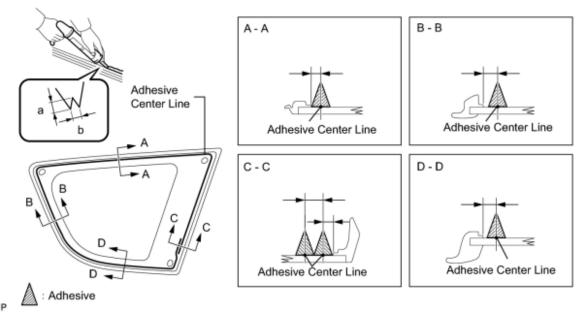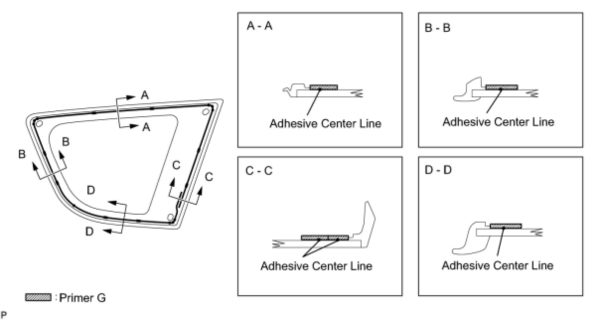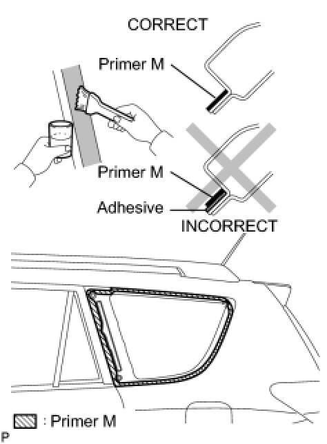 (3) Apply adhesive to the quarter window glass as shown in the illustration.