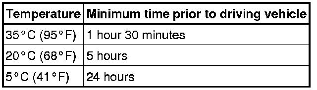 Do not drive the vehicle within the time written in the table below.