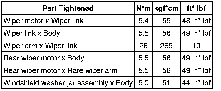 SERVICE SPECIFICATIONS: WIPER AND WASHER: TORQUE SPECIFICATIONS