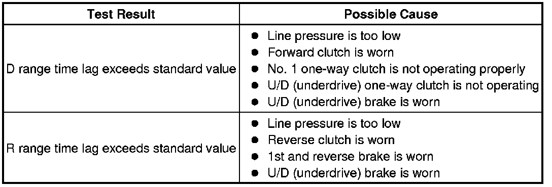 (2) Move the shift lever to D and measure the time until the shock is felt.