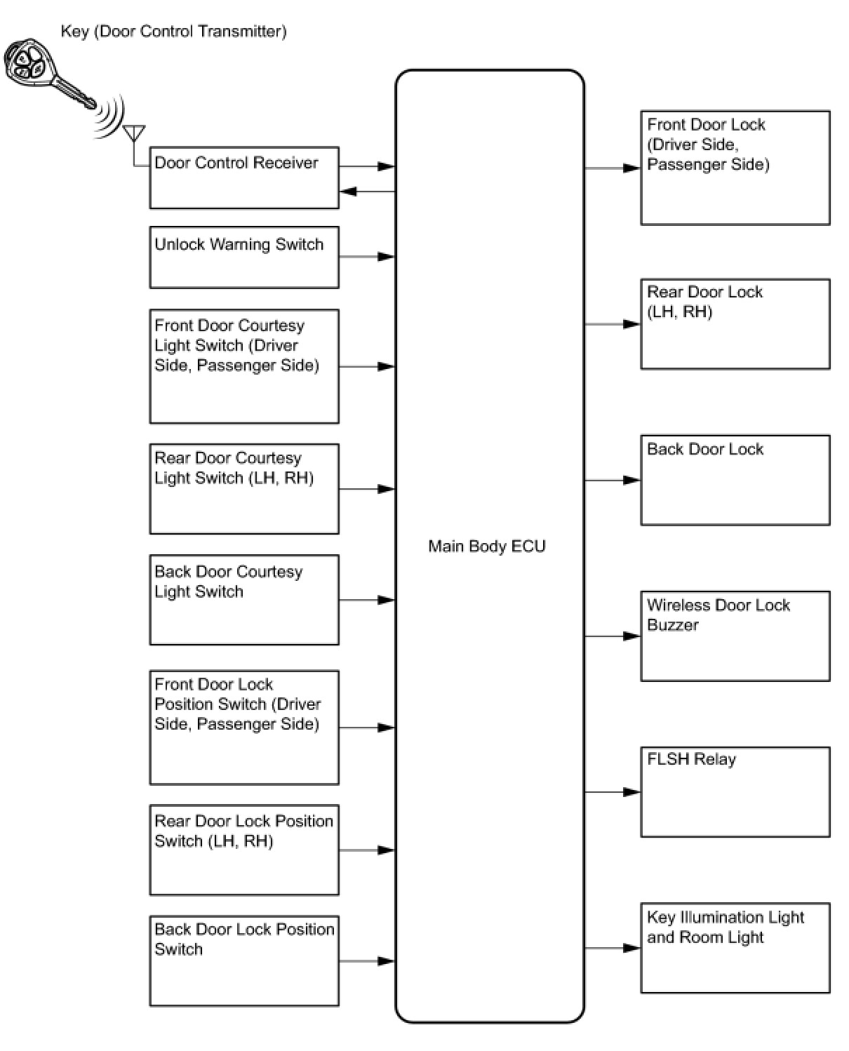 DOOR LOCK: WIRELESS DOOR LOCK CONTROL SYSTEM (w/o Smart Key System): SYSTEM DIAGRAM