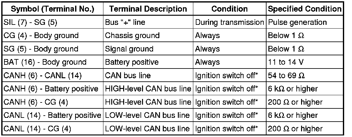 *: Before measuring the resistance, leave the vehicle as is for at least 1 minute and do not operate the ignition switch, any other switches or the doors.