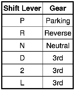 When the transmission wire is disconnected, the transaxle gear will be set as listed below.