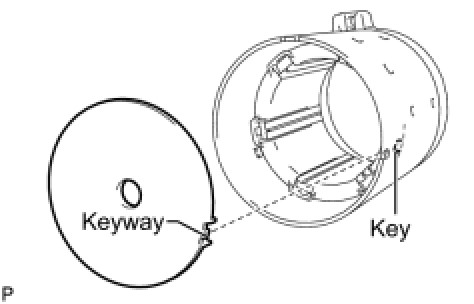 (b) Align the keyway of the starter armature plate with the key inside the starter yoke, and install the starter armature plate.