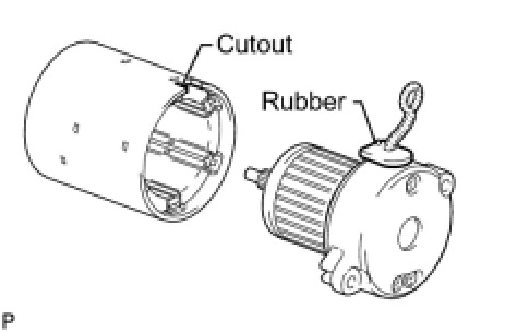 (a) Align the rubber of the end frame with the cutout of the starter yoke.