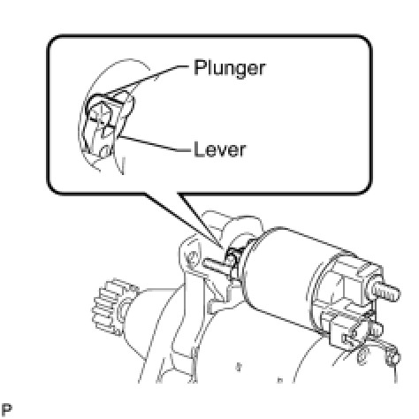 (c) Temporarily install the magnet starter switch by hooking the plunger into the upper side of the pinion drive lever.