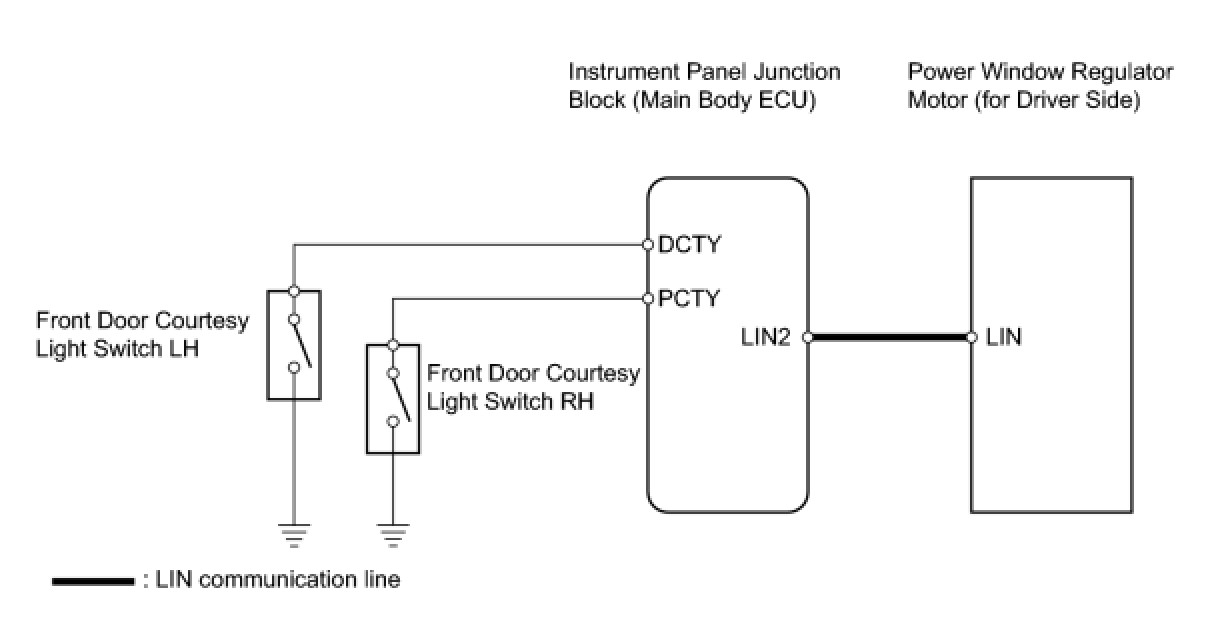 * The power window control system uses a multiplex communication system (LIN). Inspect the communication function by following HOW TO PROCEED WITH TROUBLESHOOTING. Troubleshoot the power window control system after confirming that the communication system is functioning properly.