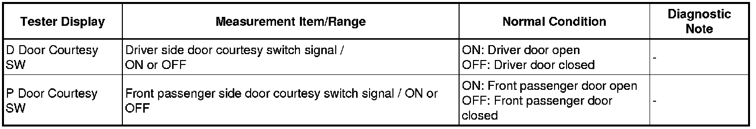 3. READ VALUE USING TECHSTREAM (DOOR COURTESY LIGHT SWITCH)