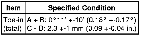 If the toe-in is not within the specified range, inspect the suspension parts and replace them if necessary.