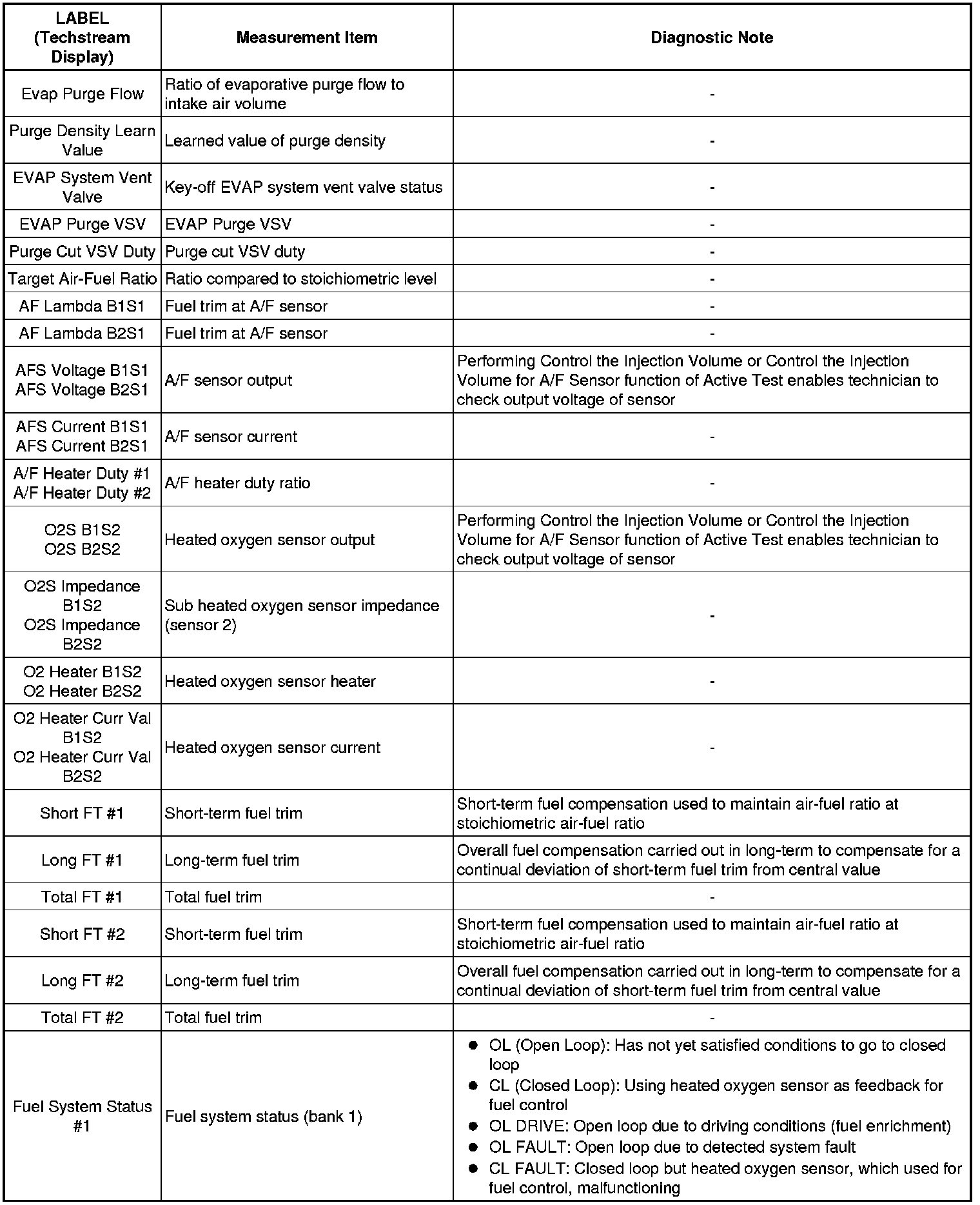 Freeze frame data records the engine conditions (fuel system, calculated load, engine coolant temperature, fuel trim, engine speed, vehicle speed, etc.) when a malfunction is detected. When troubleshooting, it can help determine if the vehicle was moving or stationary, the engine was warmed up or not, the air-fuel ratio was lean or rich, and other data from the time the malfunction occurred.