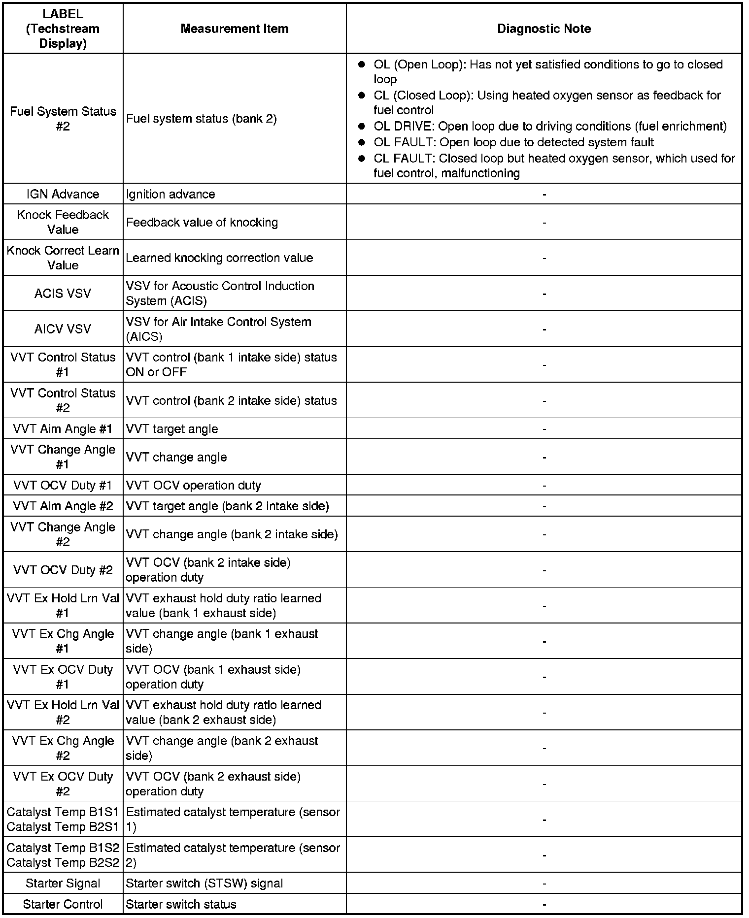 2GR-FE ENGINE CONTROL SYSTEM: SFI SYSTEM: FREEZE FRAME DATA