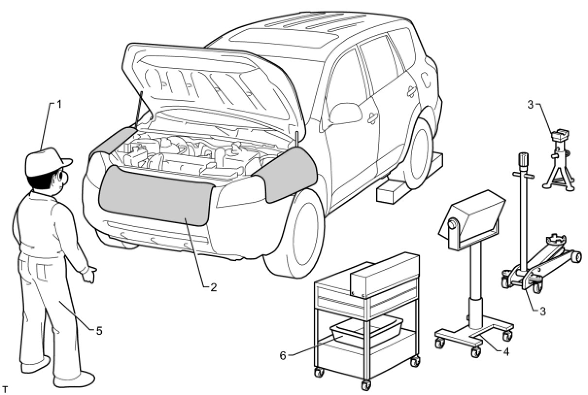 (b) JACKING UP AND SUPPORTING VEHICLE