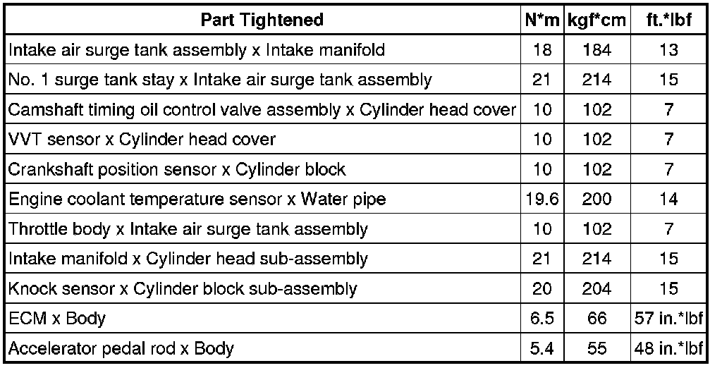 SERVICE SPECIFICATIONS: 2GR-FE ENGINE CONTROL SYSTEM: TORQUE SPECIFICATIONS