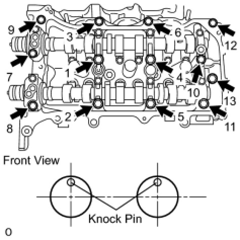 Install the camshaft housing, and install the 12 bolts in the order shown in the illustration.
