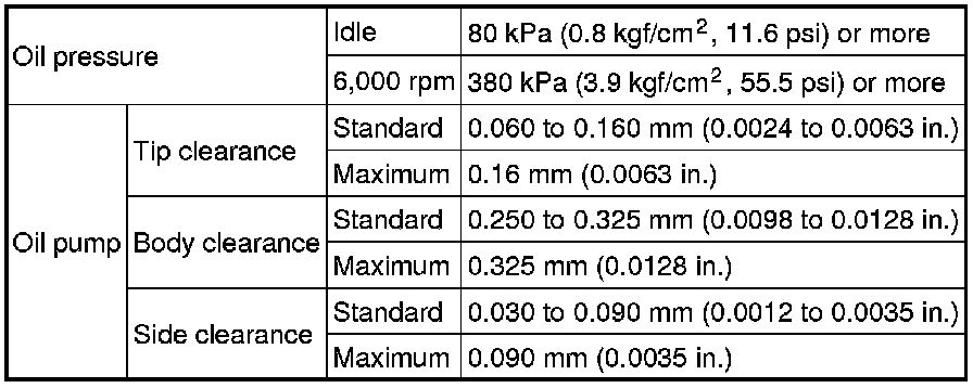 SERVICE SPECIFICATIONS: 2GR-FE LUBRICATION: SERVICE DATA