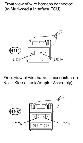 The No.1 stereo jack adapter assembly sends the sound data signal of an external device to the multi-media interface ECU through this circuit.