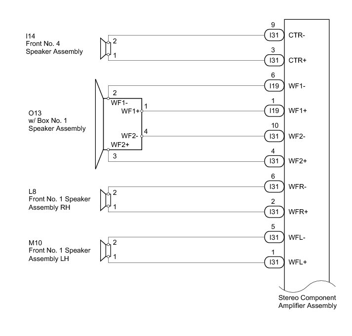 4. CHECK HARNESS AND CONNECTOR (STEREO COMPONENT AMPLIFIER - FRONT NO. 1 SPEAKER)