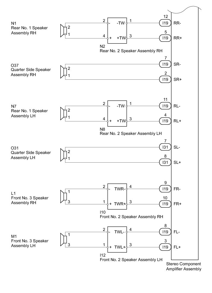 13. CHECK HARNESS AND CONNECTOR (STEREO COMPONENT AMPLIFIER - REAR NO. 2 SPEAKER)