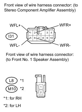 (b) Disconnect the L8*1 and/or M10*2 front No. 1 speaker assembly connector.
