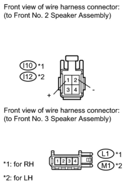 (a) Disconnect the L1*1 and/or M1*2 front No. 3 speaker assembly connector.
