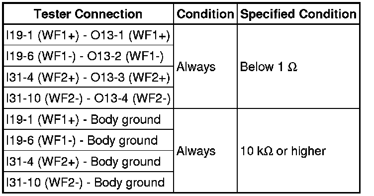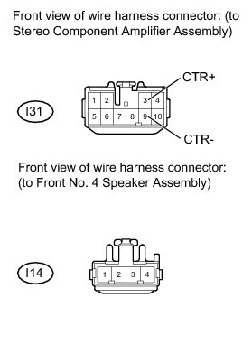 10. CHECK HARNESS AND CONNECTOR (STEREO COMPONENT AMPLIFIER - FRONT NO. 4 SPEAKER)