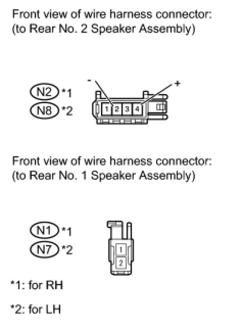 (b) Disconnect the N2*1 and/or N8*2 rear No. 2 speaker assembly connector.