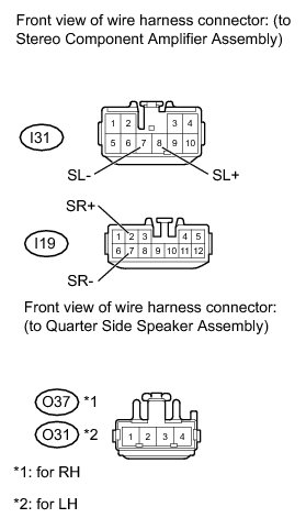 (a) Disconnect the O37*1 and/or O31*2 quarter side speaker assembly connector.