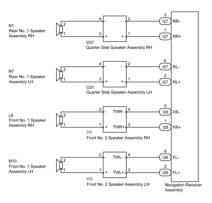 NAVIGATION / MULTI INFO DISPLAY: NAVIGATION SYSTEM (w/o USB Audio System): Speaker Circuit