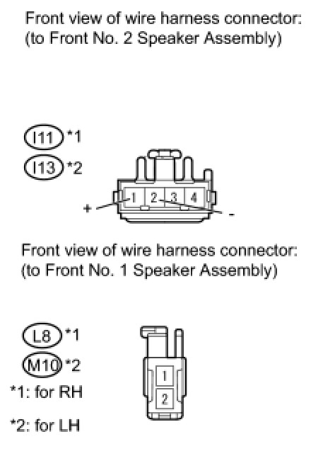 (b) Disconnect the L8*1 and/or M10*2 front No. 1 speaker assembly connector.