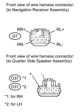(a) Disconnect the O37*1 and/or O31*2 quarter side speaker assembly connector.