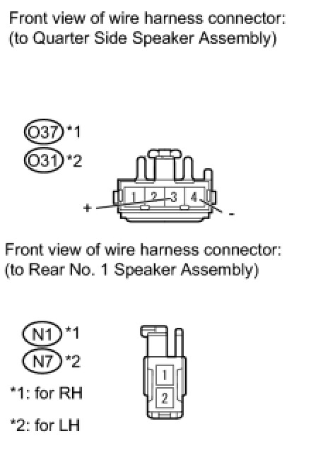 (b) Disconnect the N1*1 and/or N7*2 rear No. 1 speaker assembly connector.
