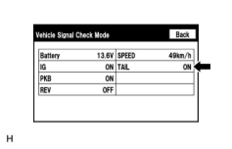 (a) Enter the "Display Check" mode and select "Vehicle Signal Check" Operation Check.
