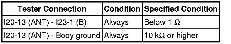 (c) Measure the resistance between the antenna cord and body ground to check for a short circuit in the antenna cord.