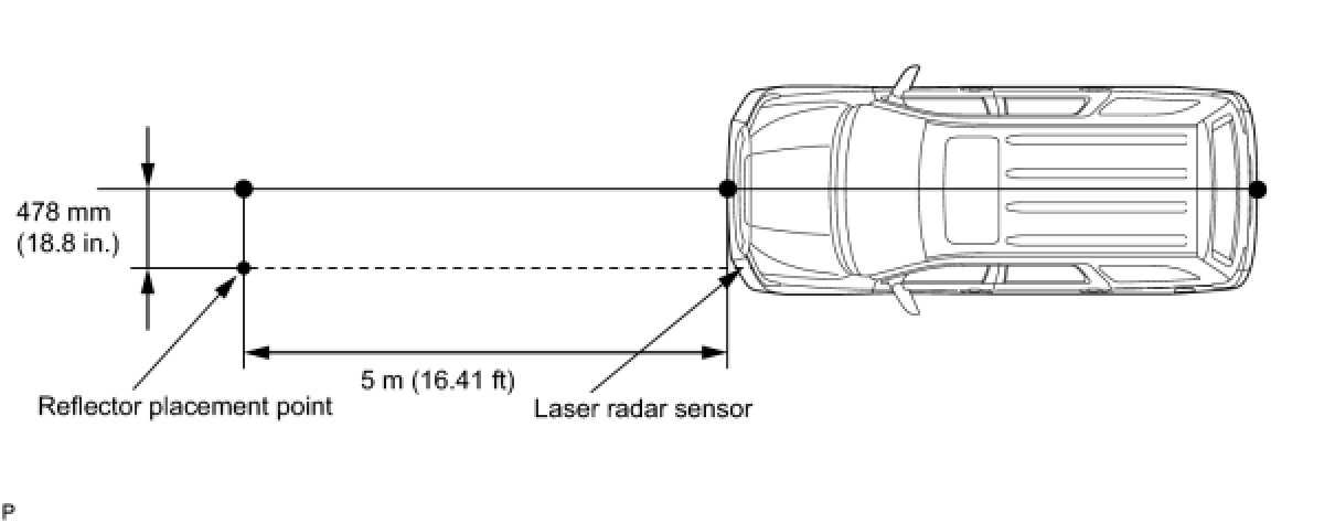 (5) From the 5 m (16.41 ft) marked position, measure 478 mm (18.8 in.) to the right and place the reflector there.