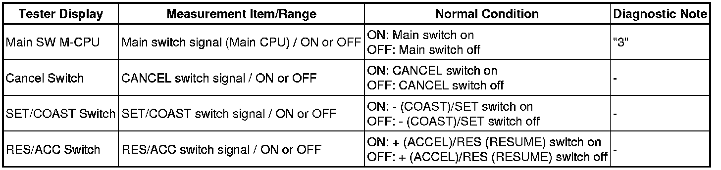 CRUISE CONTROL: DYNAMIC LASER CRUISE CONTROL SYSTEM: Cruise Control Switch Circuit
