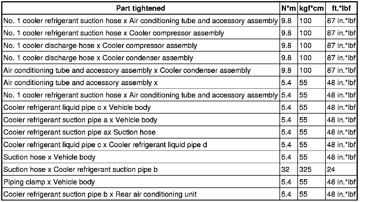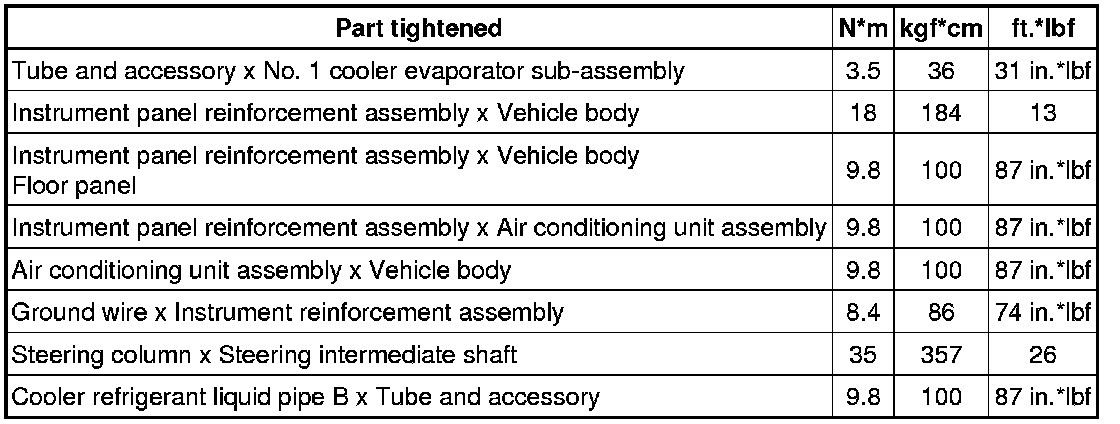 SPECIFICATIONS: HEATING / AIR CONDITIONING: TORQUE SPECIFICATIONS